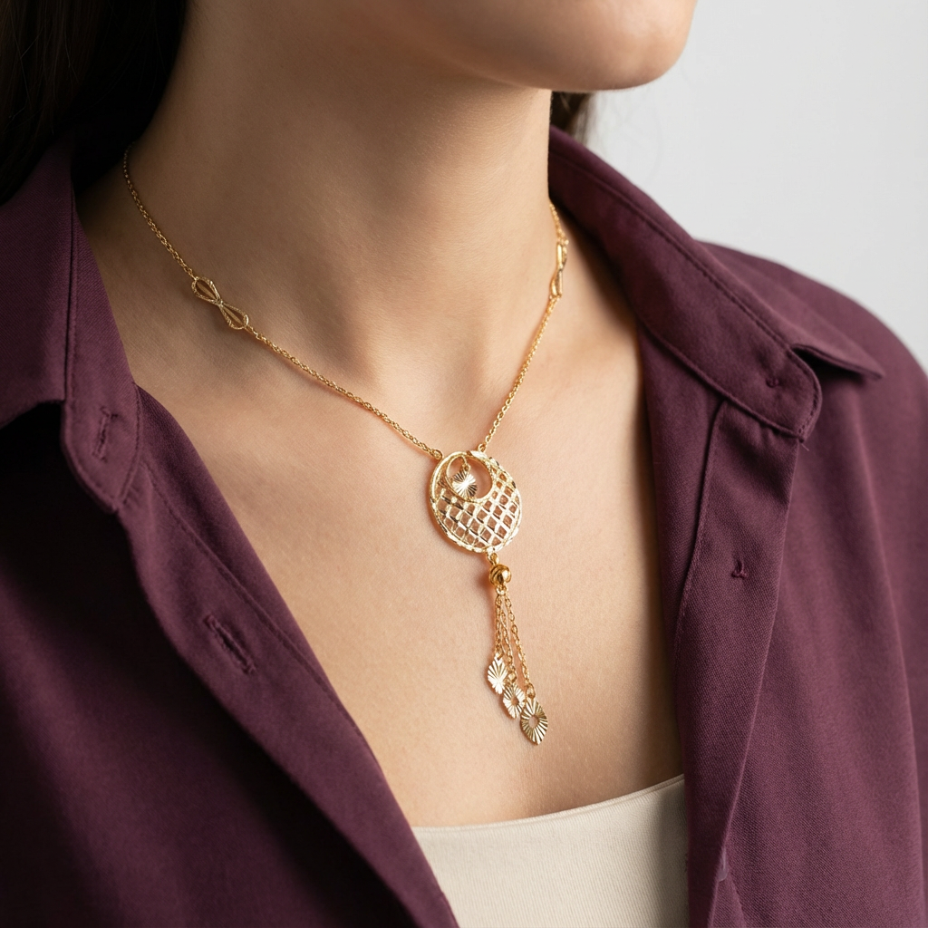 عقد لافيرا ذهب عيار 21 بإطار شبكي وتعليقات زخرفية