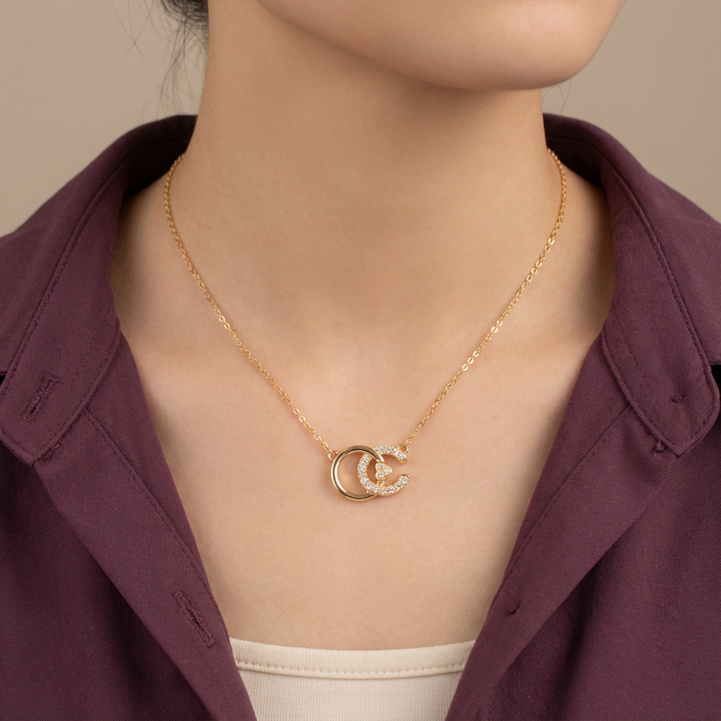 سعر الوحدة لكلعقد مختلف مبهر مثلك، لما له من تصميم أنيق يجمع بين اللمسة العصرية مع الأناقة التامة، حيث مكون من تصميم يجمع الدائرة مع حرف ال C ذو فصوص بيضاء وفي المنتصف قلب مرصع بفصوص لامعة.