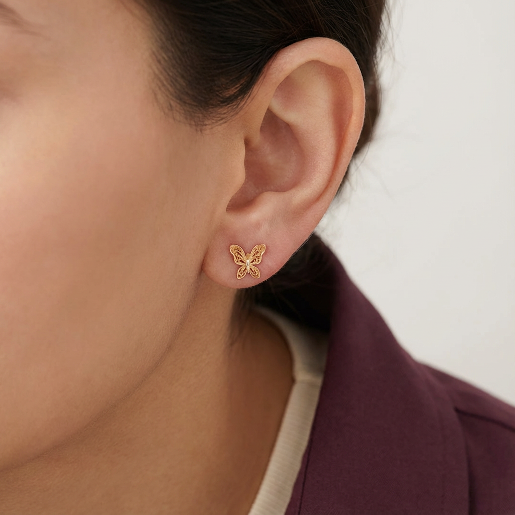 أقراط ذهب عيار 18 بلمسة فراشة منقوشة