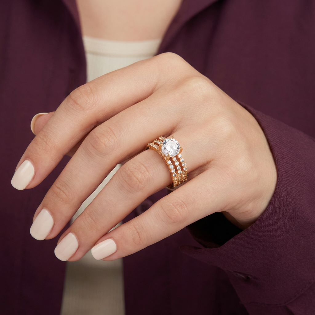 سعر الوحدة لكلدبلة ذهب عيار 18 بتصميم حجر دائري بارز يتوسط صفوفًا مرصوفة تمنح الخاتم طابعًا أنيقًا ومتناسقًا، مع تفاصيل دقيقة تضيف لمسة ناعمة تكمل الإطلالة بأسلوب راقٍ وهادئ يناسب مختلف المناسبات.