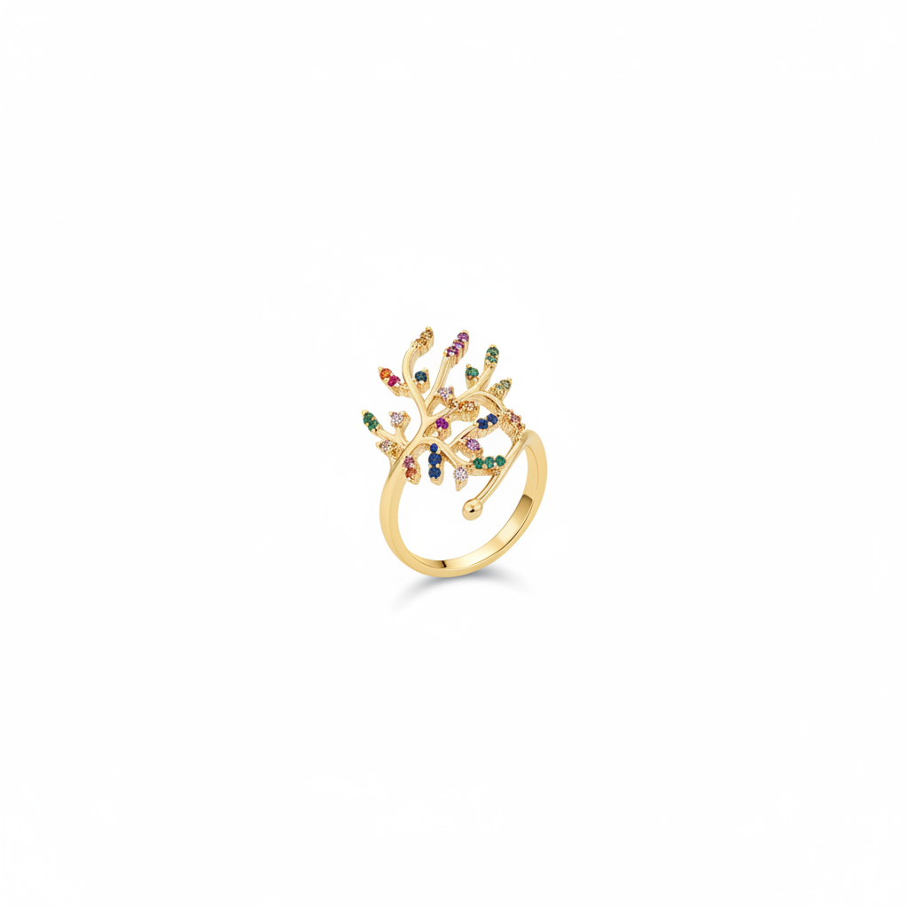 سعر الوحدة لكل"خاتم "جنة الألوان"، مصنوع من الذهب عيار 18 من غامية. يأتي بتصميم مستوحى من شكل الأغصان المرصعة بأحجار ملونة لامعة، مما يضيف لمسة فنية وأنيقة لأصابعك. قطعة مميزة تناسب الإطلالات اليومية والمناسبات