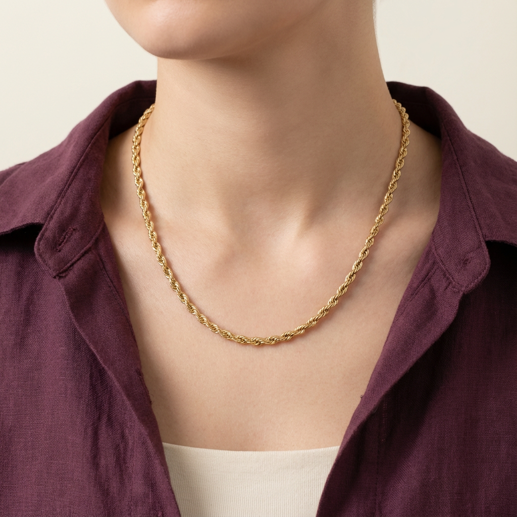 سعر الوحدة لكلعقد مجدول مصنوع من الذهب عيار 18 مع قفل محكم في الخلف. يبدو وكأنه عقد تقليدي ذلك بسبب تصميمة البسيط، ولكن إضافتة لجميع إطلالتك اليومية يظهر مدي جمالك الناعم الداخلي ويجعل كل إطلاله لكي لا تنسي في أذهان الأخرين.
