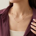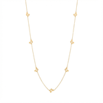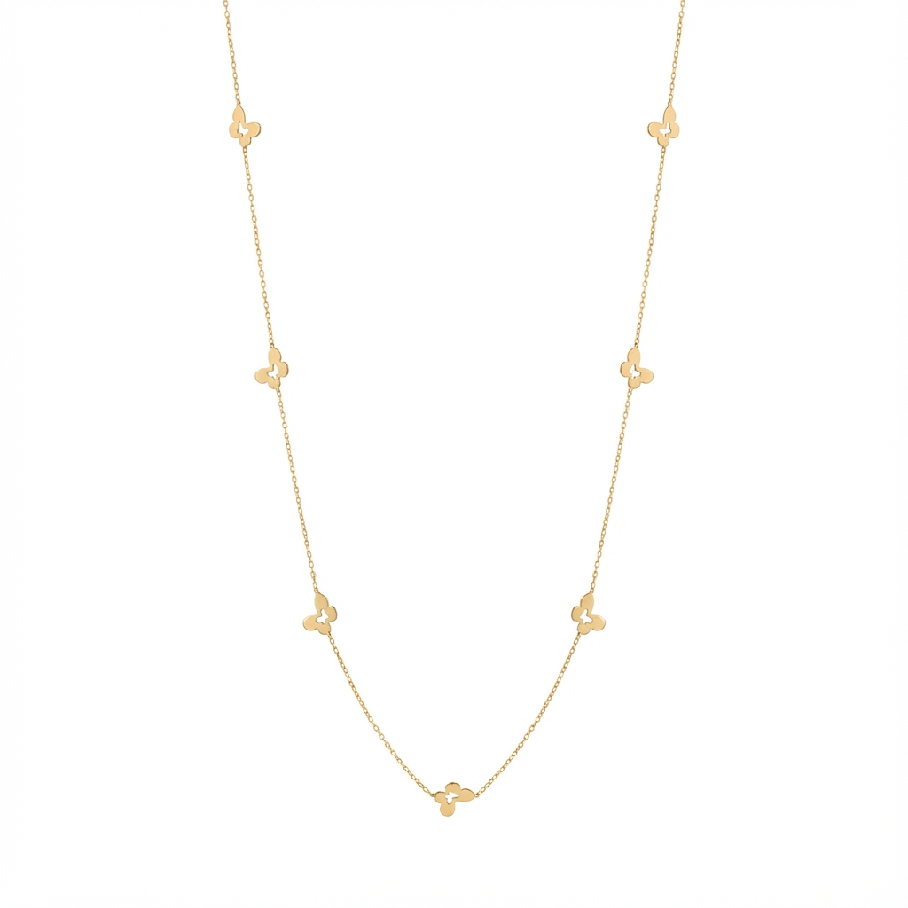 سعر الوحدة لكلشال مصنوع من الذهب عيار 18 بتصميم طويل وانسيابي، تتوزع عليه تعليقات صغيرة على شكل فراشات متدلية بتوازن على طول السلسلة. التفاصيل الرقيقة وحركة التعليقات الخفيفة تمنح القطعة حضوراً ناعماً وأنيقاً، ما يجعلها مناسبة لتنسيق الإطلالات اليومية أو المسائية دون مبالغة.