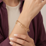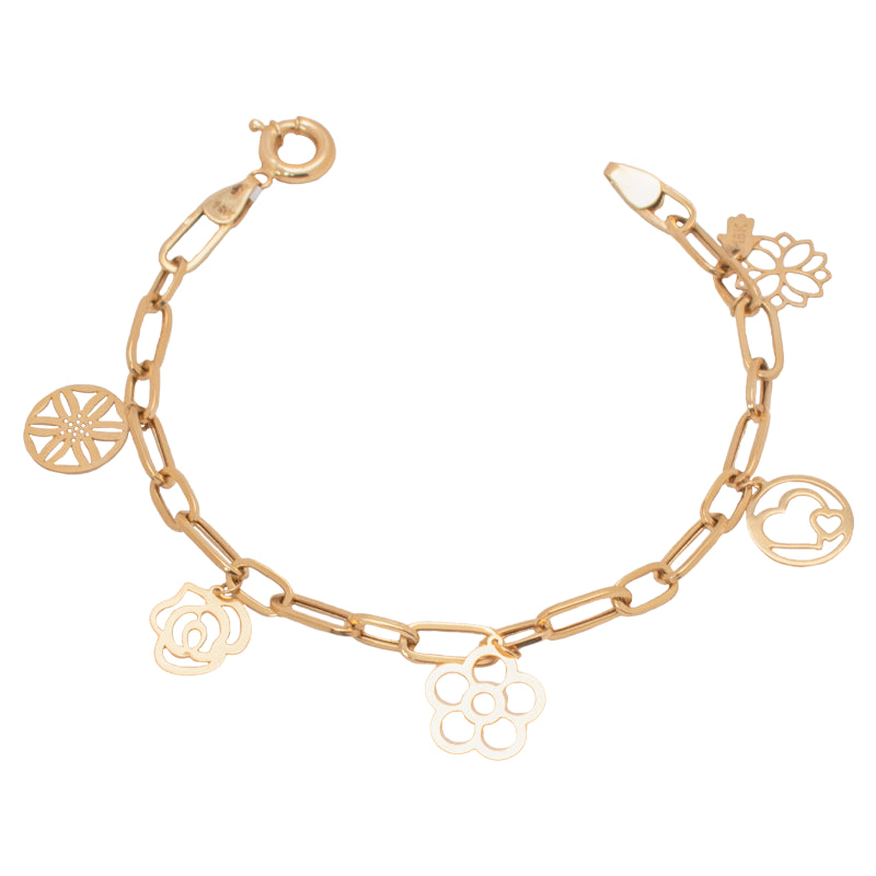 سعر الوحدة لكلأسورة مصنوعة من الذهب عيار 18 بتصميم جنزير بروابط مستطيلة أنيقة، تتدلى منها تعليقة على شكل زهرة واضحة بتفاصيل بسيطة ومتناسقة. يمنح التصميم حركة خفيفة وحضوراً ناعماً على المعصم، ما يجعلها مناسبة للارتداء اليومي أو لتنسيق إطلالة أنثوية دون مبالغة.