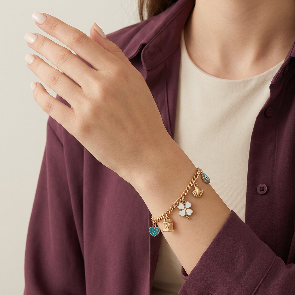 سعر الوحدة لكلأسورة مصنوعة من الذهب عيار 18 بتصميم جنزير أنيق، تتدلى منها تعليقات واضحة بأشكال مختلفة موزعة بتوازن على طول السلسلة. الحركة الخفيفة للتعليقات والتفاصيل البسيطة تمنح المعصم حضوراً رقيقاً ومميزاً، ما يجعلها مناسبة للارتداء اليومي أو لتنسيق إطلالة ناعمة دون مبالغة.