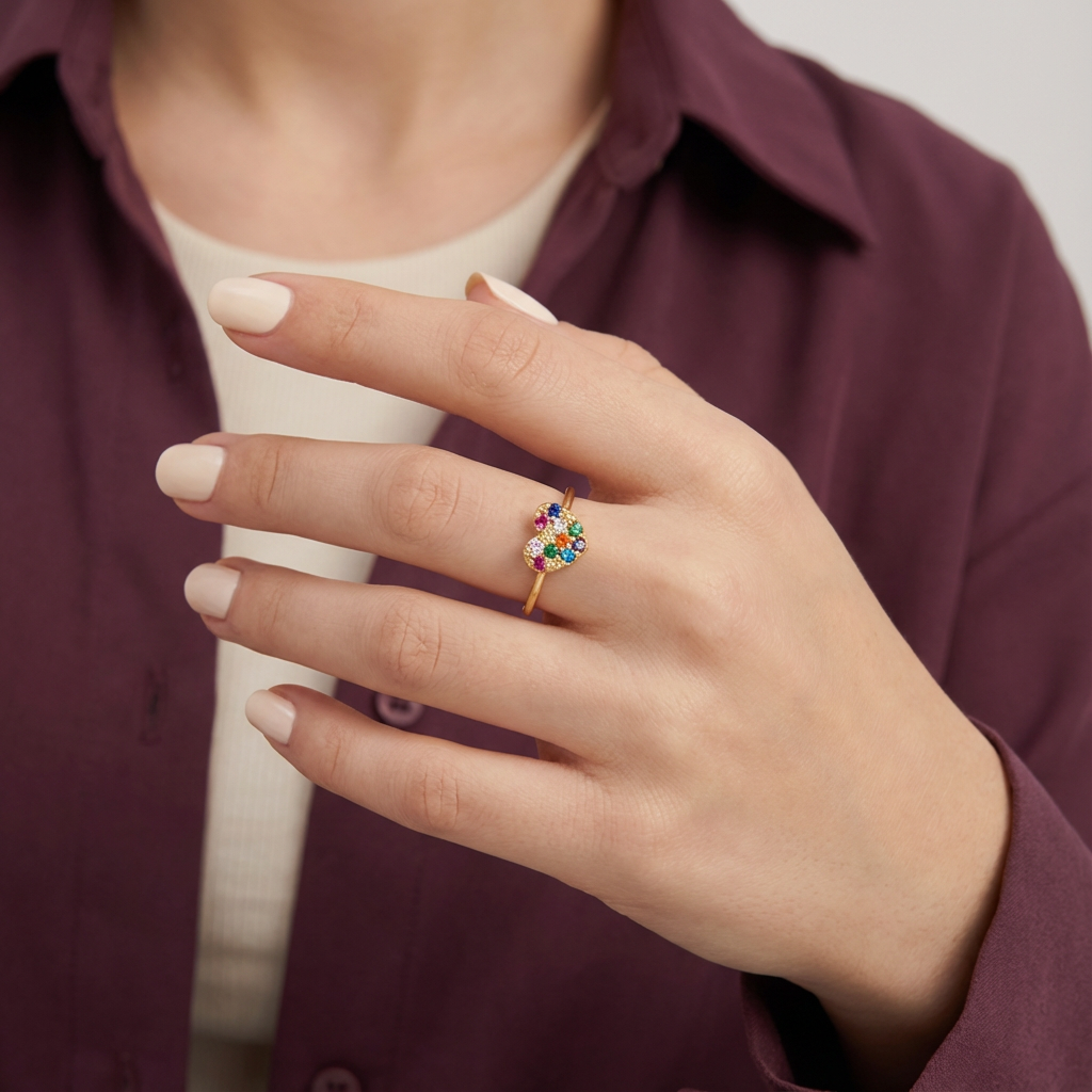 سعر الوحدة لكلخاتم "شابه إلى الأبد"، يتميز بتصميمه الرقيق الناعم مثلك، حيث مصمم من قلب صغير مرصع بفصوص ملونة أنيقة، مثالي لإرتدائة يوميَا.