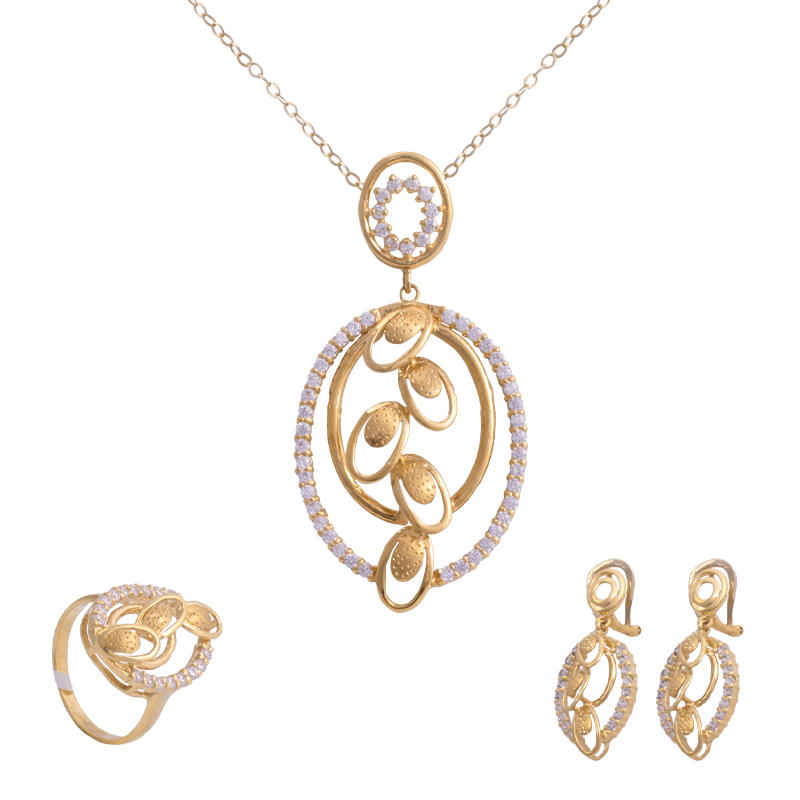 طقم مجوهرات ذهب عيار 18 بفصوص لامعة