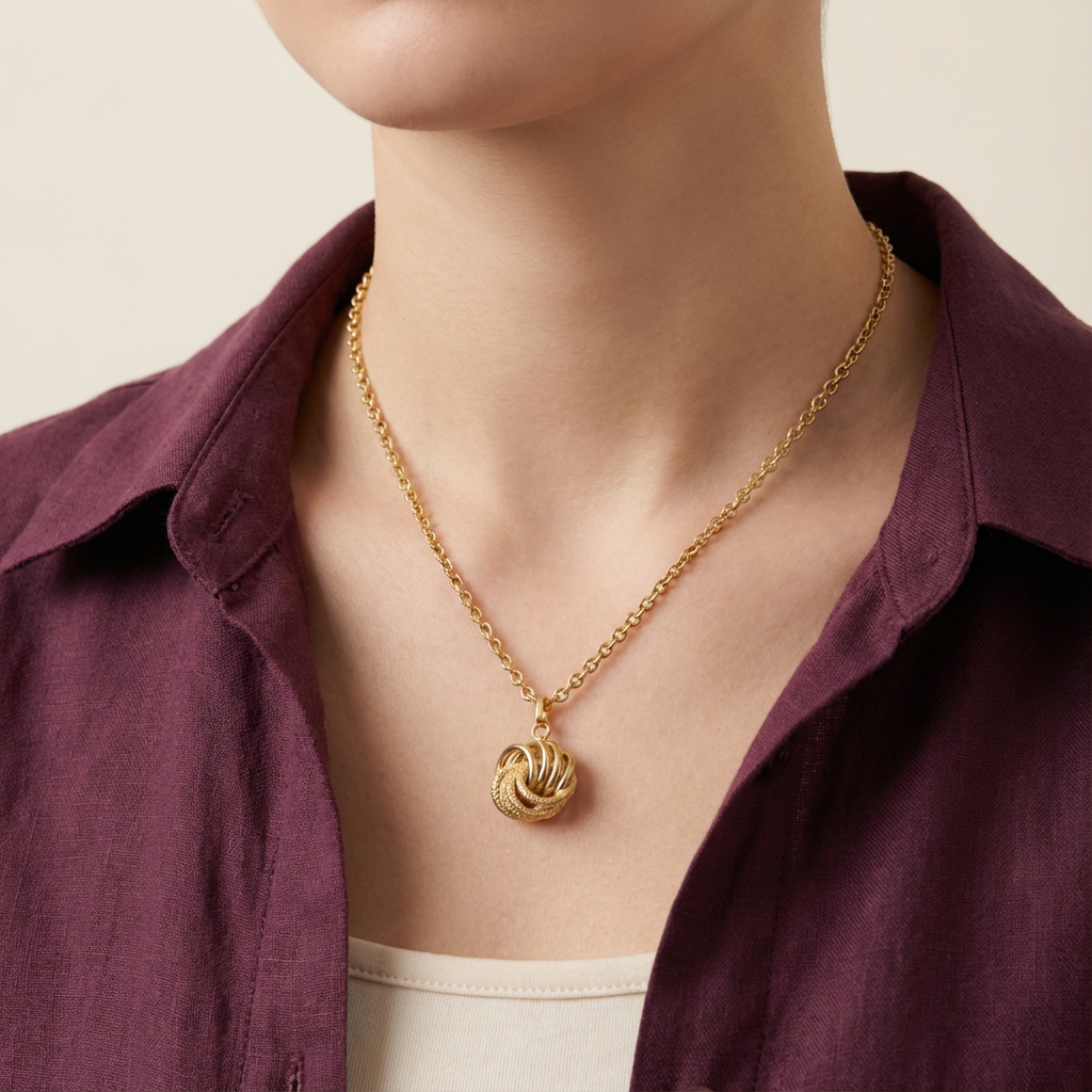 عقد ذهب عيار 18 بتعليقة بتصميم عقدة