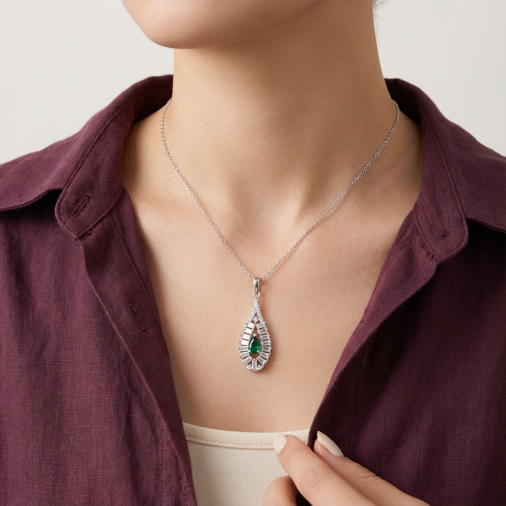 عقد ذهب عيار 18 بتعليقة بفص أخضر