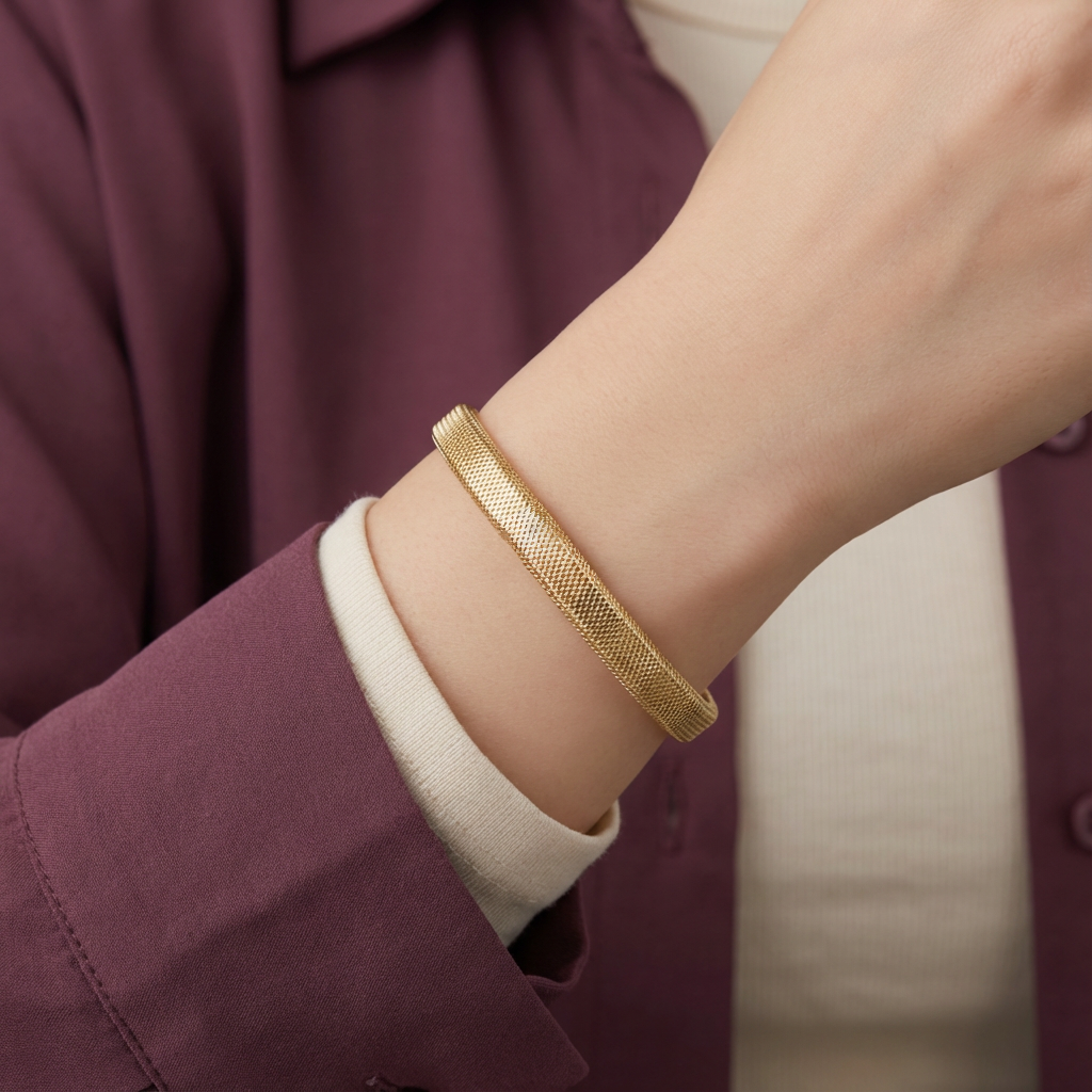 أسورة ذهب عيار 18 بتصميم شبكي عريض