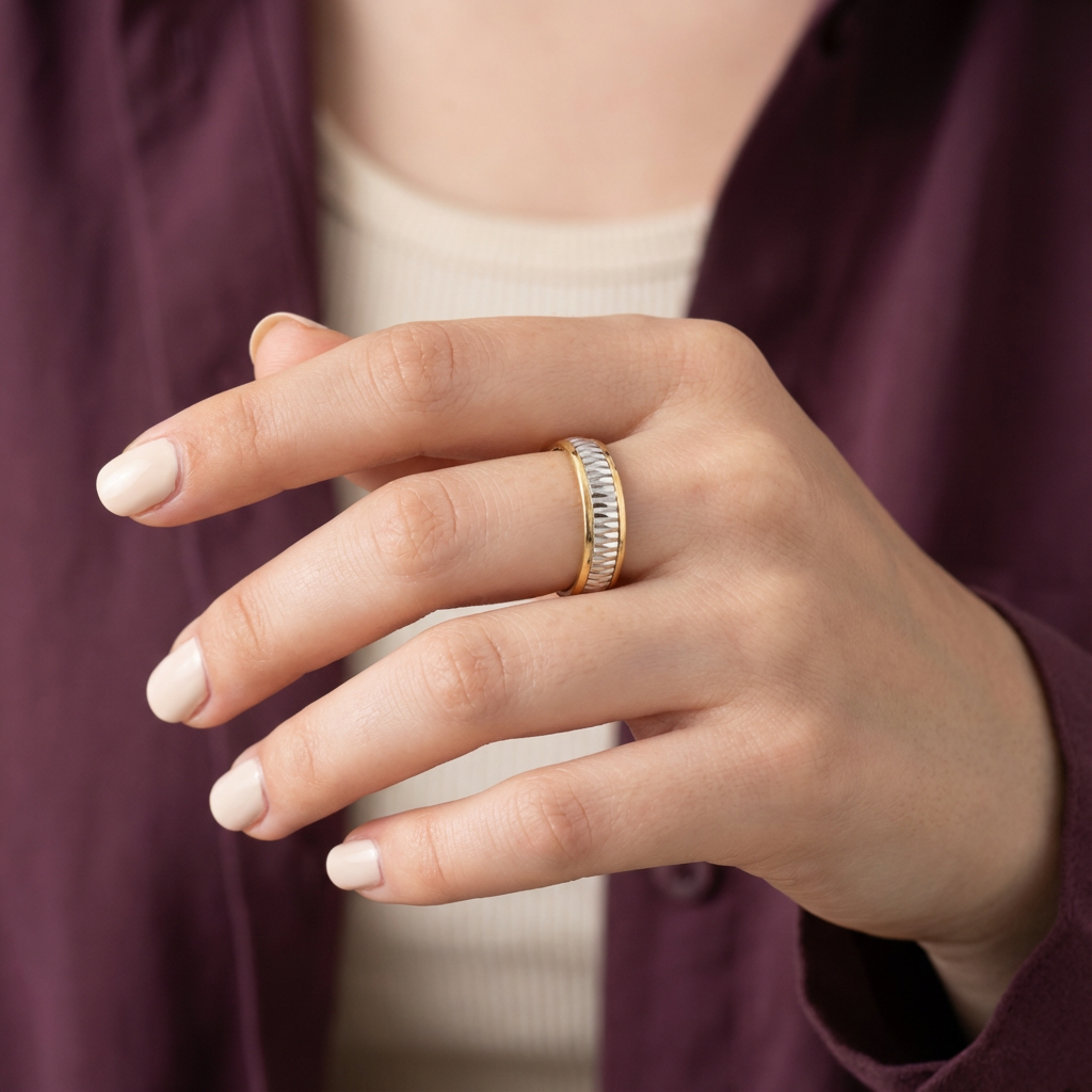 Unit price perخاتم دورتي، أرقّ اختيار يجمع بين الأناقة والبساطة في آنٍ واحد، ومثالي للاستخدام اليومي. هذا الخاتم مصنوع من الذهب عيار 18 مع تصميم ملون بالأبيض في المنتصف بعرض الخاتم، ليمنحك إطلالة عصرية وهادئة.