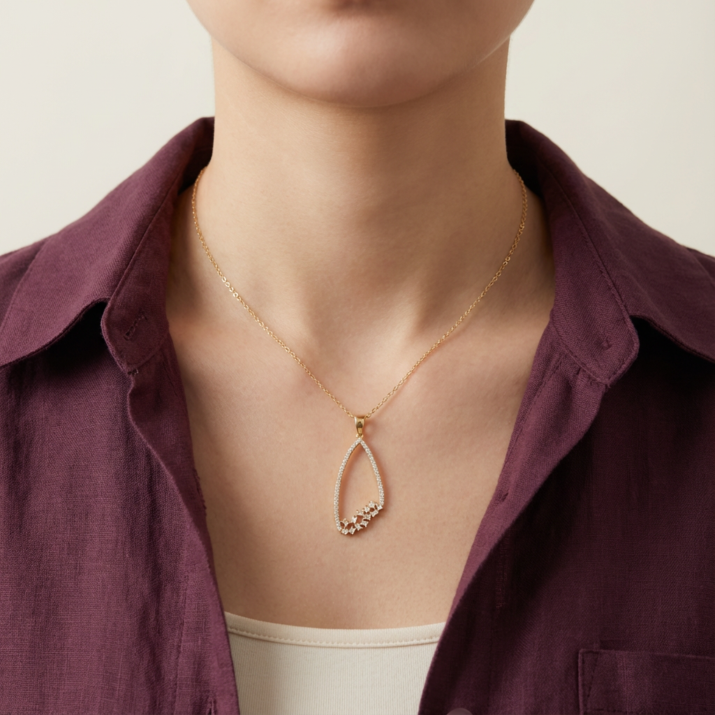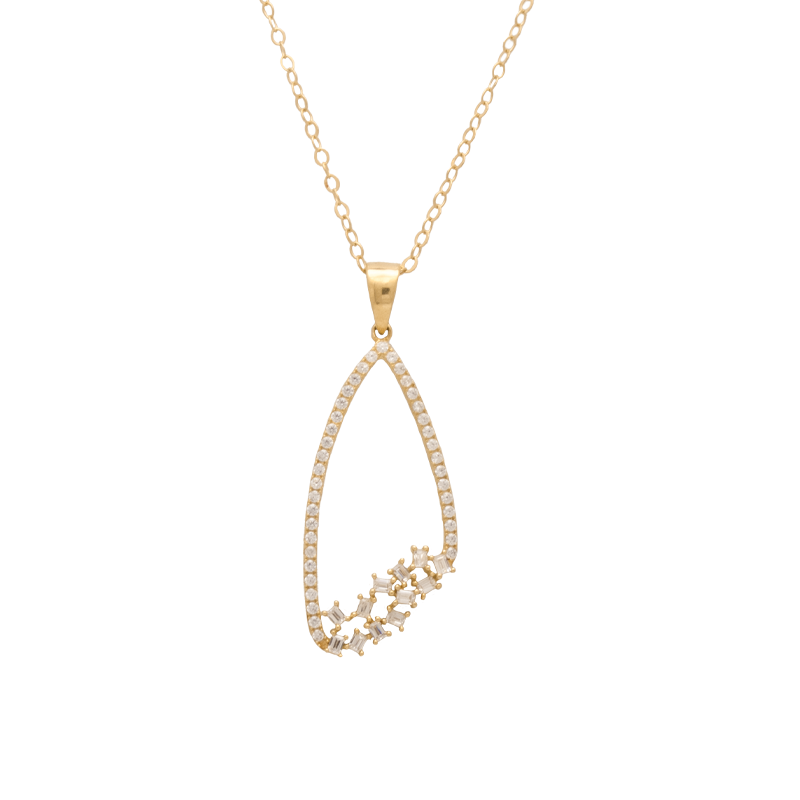 Unit price perأشعري بالتميّز مع تلك التعليقة بتصميم مبتكر يجمع بين البساطة والأناقة، مصنوع من الذهب عيار 18 ومزيّن بفصوص بيضاء لامعة. بفضل تصميمه الناعم يمكنك الاستمتاع بارتدائه في أي وقت، سواء في إطلالاتك اليومية أو مناسباتك الخاصة.