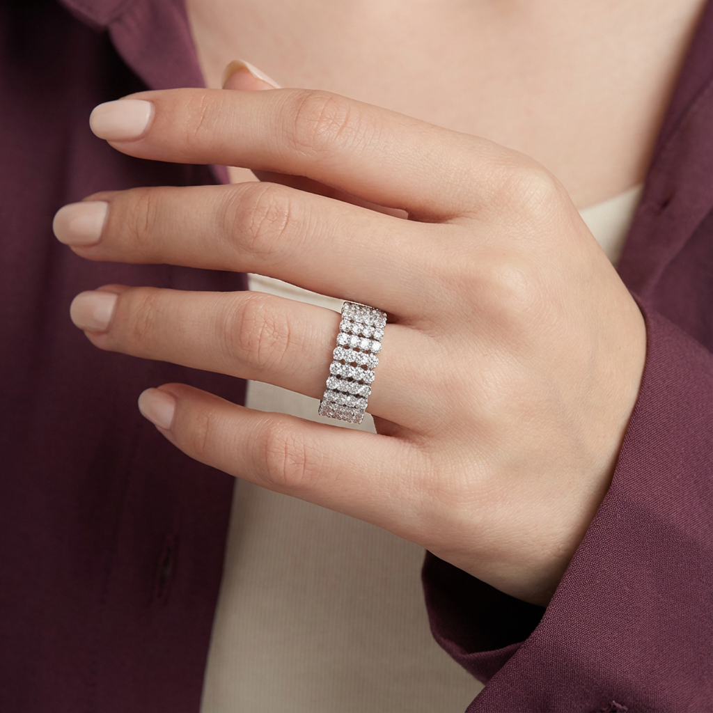 سعر الوحدة لكلخاتم نيتا الجذاب المليئ بالتفاصيل، مصنوع من الذهب عيار 18 مرصع بالكامل بفصوص بيضاء لامعة، تمنحك مظهر جذاب يخطف الأبصار في ثواني.